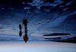2007Twee vogels over het ijs.December 2007, Vianen. Deze vogels en mijn camera zijn in de beweging. Natuur.