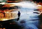 2009Vader met zijn zon op het strand, avond, winter.