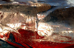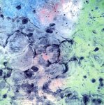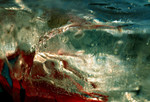 2008Het oppervlak van een oude spiegel die lang buiten stond. De laag van deze spiegel is gebarsten,mat geworden.Sommige plekken van deze laag zijn groen geworden van het mos.